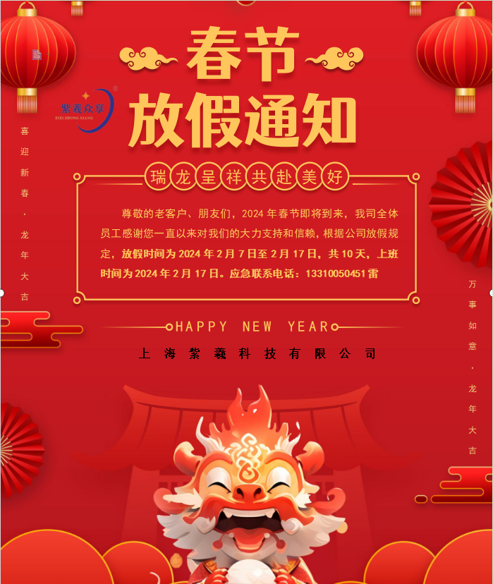 From February 7 to February 17, 2023, Zixi Technology will enter the full staff holiday mode. During this time, we will only accept orders, but we will suspend shipping services. Please make order arrangements in advance to avoid any inconvenience to you.